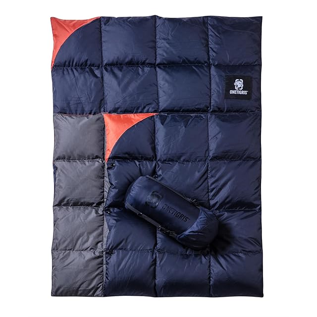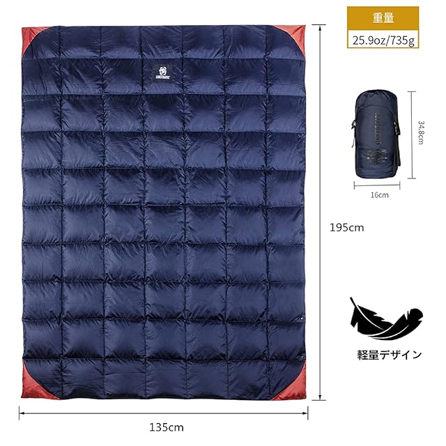 OneTigris ダウンブランケット 195cmⅹ135cm マルチブランケット 防寒 キャンプ アウトドア ひざ掛け 掛け布団 車中泊 超軽量 テント用キルト 柔らかい 暖かい コンパクト 収納袋付き