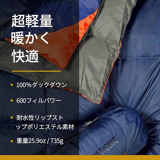 【仕様】超軽量(25.9oz / 735g)、収納サイズ(35cm * 16cm)、本体サイズ(195cm * 135cm)、5°C-25°C(41°F-77°F)の温度に最適 ご注意:洗濯機で洗わないでください。手洗いと風乾してください。