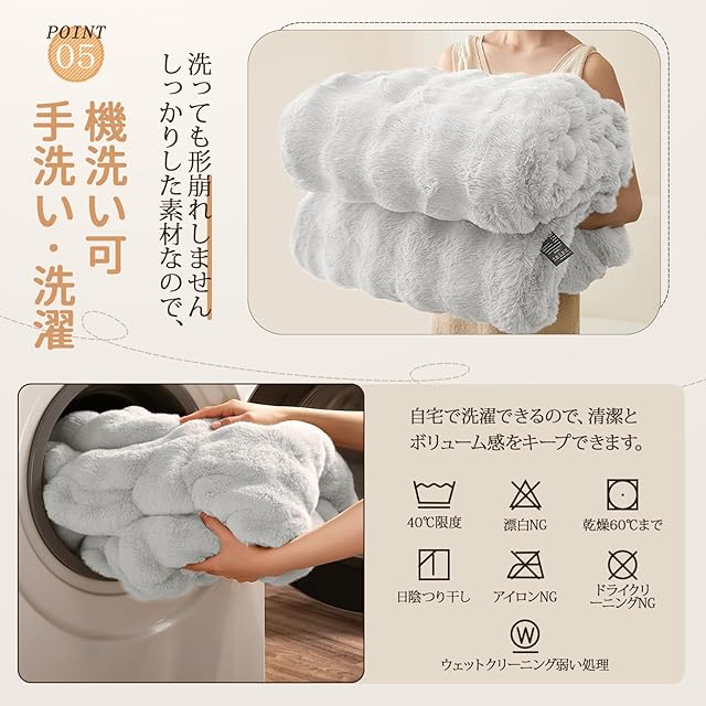 【毛布仕様】上層:ラビット調ファー 下層:ミンクファー調ファー サイズ:130*160cm カラー:グレー 重さ:2.15kg 洗濯機で洗えるブランケット仕様。