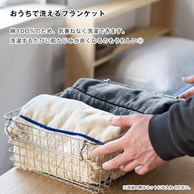 【お家で洗える】綿100%なので、おうちで気兼ねなくお洗濯できます。また、お洗濯のたびにしっとりとした肌なじみに育っていくのも嬉しい1枚。