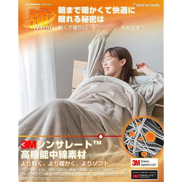 【最強発熱×抗菌防臭×高吸湿】Colorsroom毛布は『発熱繊維SUPER PRIME 3779』を採用!従来の発熱素材を超える独自開発の多機能繊維で、触れた瞬間からぽかぽか持続暖。高い抗菌防臭効果で嫌なニオイを瞬間ブロック!さらに吸湿発熱技術が寝ている間の汗を素早く吸収し、ムレずにサラッと快適な睡眠環境をキープ。
