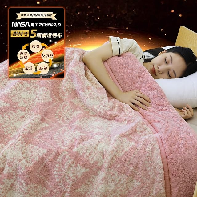 【極暖ループ設計:5層構造&襟付き】この毛布は5層構造のデザインです。①層目:高密度の<静電気防止・光触媒制菌加工>フランネル表地、②層目:NASAの宇宙服にも使用される<超断熱>エアロゲルシート、③層目:柔らかい<防音・断熱>アルミシート、④層目:<超吸湿発熱>レーヨン&HEATSTARsolar<蓄熱保温>中綿、⑤層目:高密度で静電気防止と光触媒制菌加工のフランネル裏地です。この5層でしっかり保温のループを生成し、さらに、冬用毛布は襟付き仕様で、首と肩の接触部分に柔らかくて二重構造の衿を付けて、冷気の侵入を防ぎ、さすがに上品な暖かくふわふわ安眠ブランケットです。