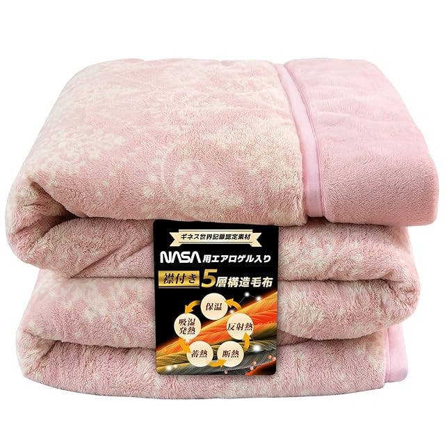 BestOnePlus 毛布 ダブル 冬用 【宇宙服の断熱素材エアロゲル&アルミシート&多機能中綿入り】5層構造 襟付き 掛け毛布 厚手 もうふ 極上暖 合わせ毛布 保温 抗菌防臭消臭 超極細繊維 フランネル 毛抜けない 静電気防止 軽量 アクリル 火山岩 あったか 洗える オーナメントピンク 180x200cm