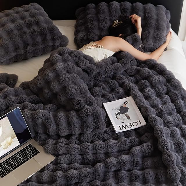 【二枚合わせ毛布】表側はなめらかなラビットファー調生地で、裏側は少し厚手のもこもこ柔らかいミンクファー調生地で仕上げた二枚合わせ毛布です。ふわふわやわらかくて、ふんわりとした肌触りで、心も体も温めてくれます。