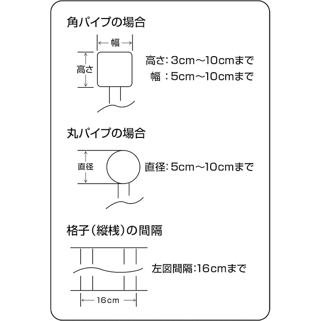 取付範囲:丸手すり Φ50~100㎜まで、角手すり W50~100XD100XH30㎜