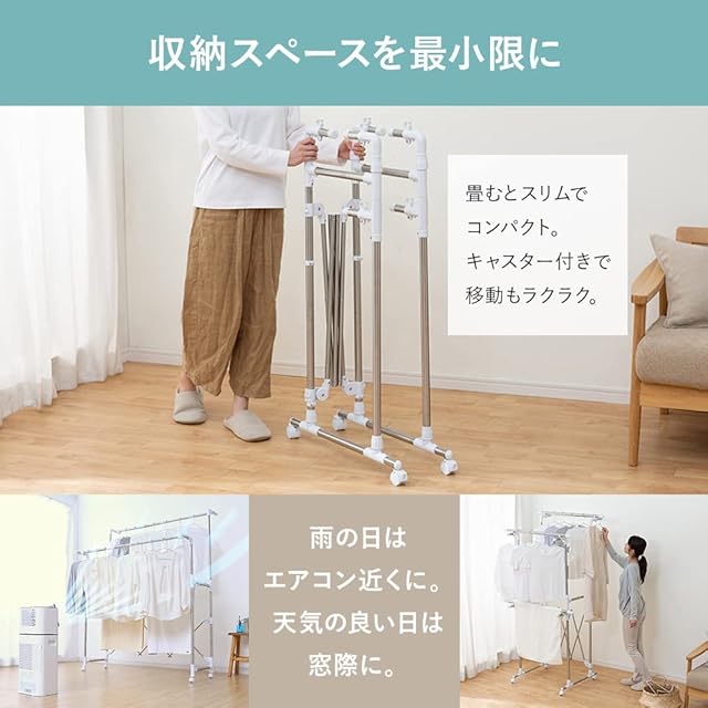 商品サイズ(cm):<使用時>幅約86.5~150.5×奥行約64.0~73.0×高さ約111.0~172.0(キャスター込)<収納時>幅約64.0×奥行約13.0×高さ約111.0(キャスター込)