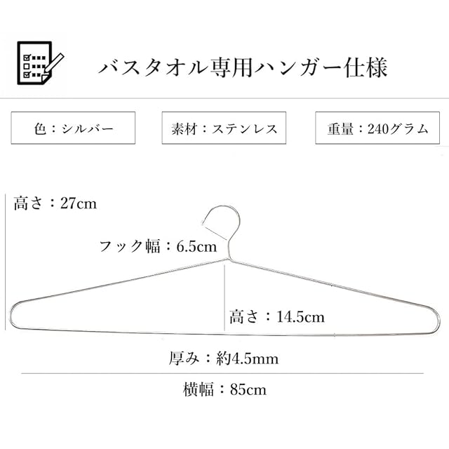 今までになかったとても大きなサイズのステンレスハンガー!幅はなんと85セントと業界でも最大級!バスタオルを1本で楽に干せるのは時短に繋がります。お客様からのご意見からこのハンガーを製造いたしました。是非一度ご利用いただきたくさんのお声をお待ちしております。