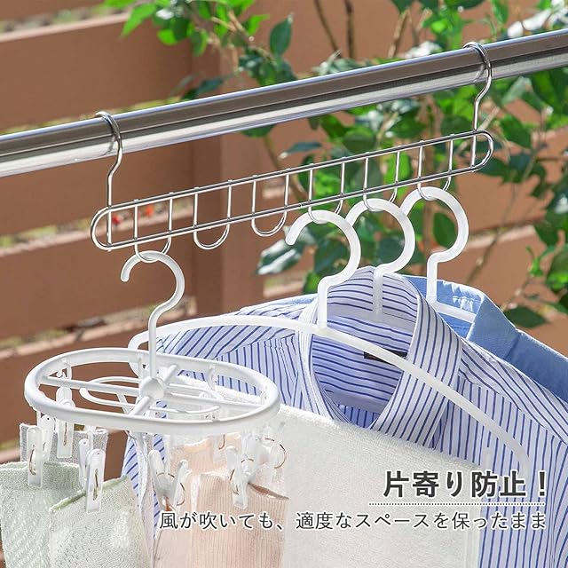 下村企販 等間隔に干せる 6連ハンガー 2本組 【日本製】 風で片寄らない まとめて取り込める 浴室乾燥OK 丈夫なステンレス製 部屋干し 室内 室外 洗濯物干し 燕三条 15064