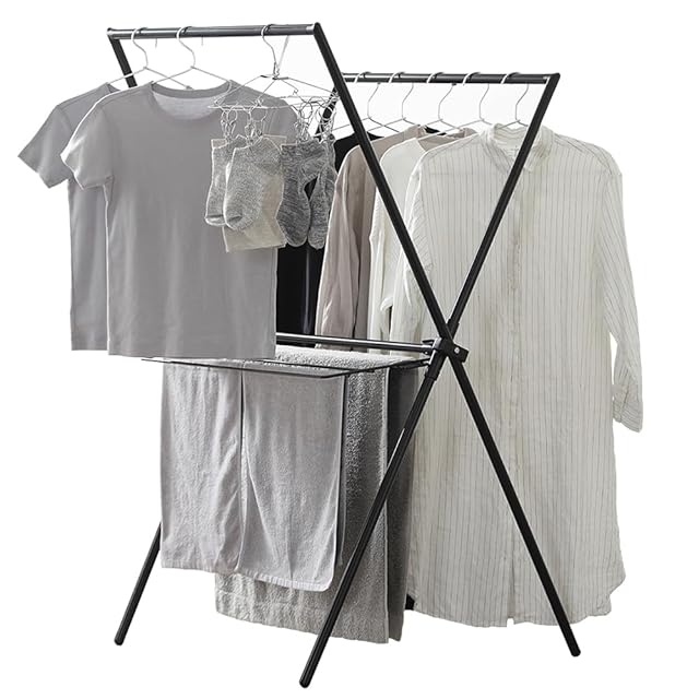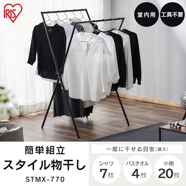 アイリスオーヤマ 洗濯物干し 物干しスタンド 室内物干し ブラック X型 使わないときはコンパクトに畳める 簡単組立 インテリア性にこだわった 布団もカラっと乾かせる 着脱可能なタオルハンガー付き 幅約76×奥行約62×高さ約130 シンプル 一人暮らし 家族 ラック STMX-770