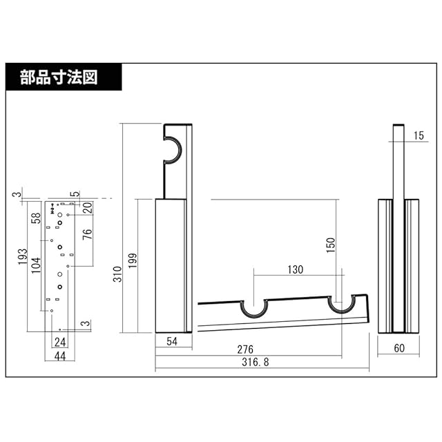 ブラケット(2個入)のみの商品。物干し竿、ハンガー等は付属しておりません。