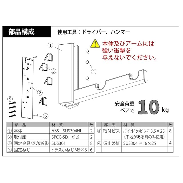 安全荷重:10kg(2個使用)