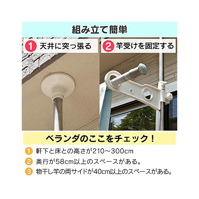 商品名:アイリスオーヤマ 洗濯物干し ベランダ 物干し 突っ張り ステンレス 高さ210-300㎝ SVI-300NR
