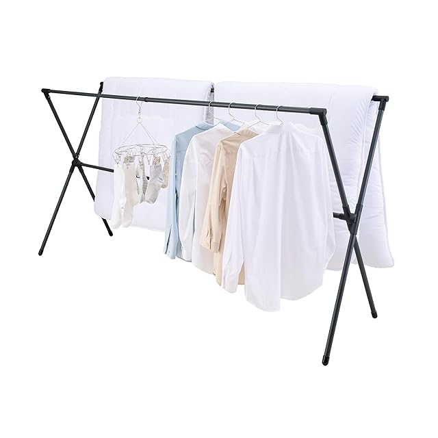 天馬 洗濯物干し 屋外 布団干し 伸縮式布団4枚干しX型 簡単組立 サビにくい 物干しスタンド ベランダ 室内物干し 折りたたみ ブラック【サイズ 幅137-238×奥行62×高さ115cm】【PSBK-12】