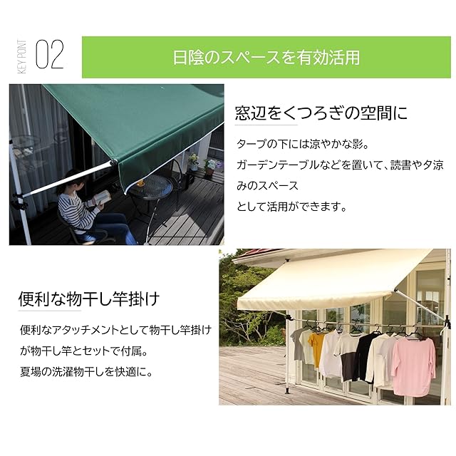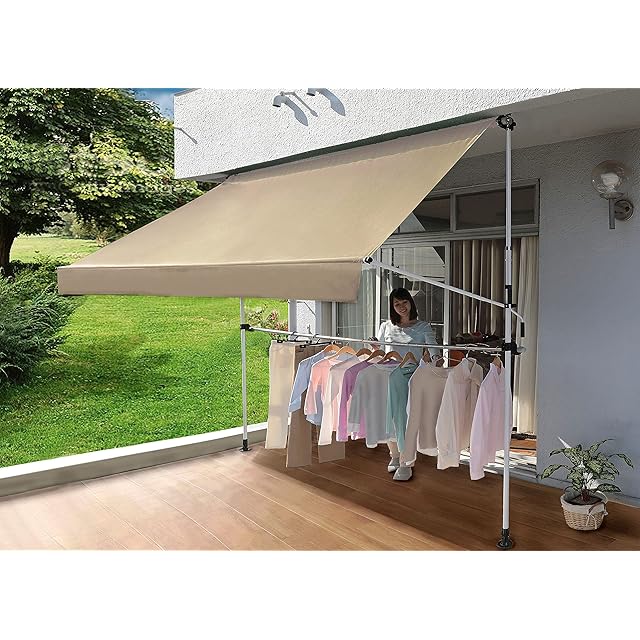 リビングアウト(Living Out) 物干し竿付きオーニング 日よけ アーム伸縮タイプ 幅3m ブラウン