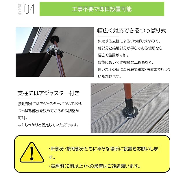 ※高層階(2階以上)への設置は絶対に行わないでください。転倒・落下により重大な事故が発生する恐れがあります。 ※前幕部はメッシュではありません。 ※本製品はスチール製のため、風雨や海風、湿気の多い場所等、設置環境によっては設置後サビが発生することがあります。