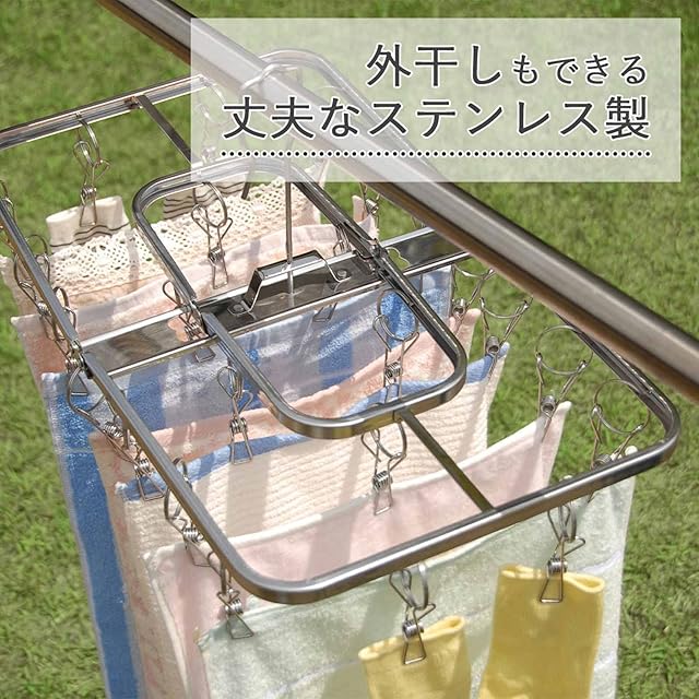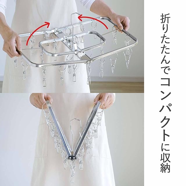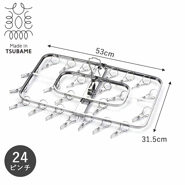 下村企販 壊れにくくて永く使える ピンチハンガー 角型24ピンチ 【日本製】 ステンレス製 サビにくい ピンチが絡まりにくい 浴室乾燥OK 折りたたんでコンパクトに収納 部屋干し 室内 室外 洗濯物干し 燕三条 26448