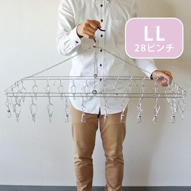 大木製作所 洗濯ハンガー 28ピンチ ピンチハンガー 折りたたみ式 からみにくい ステンレスハンガー LL 00380-7