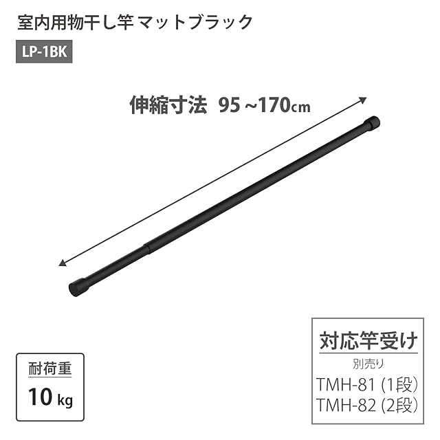 HEIAN SHINDO 室内物干し竿 95 マットブラック 伸縮幅 95~170cm 耐荷重10kg LP-1BK 平安伸銅工業