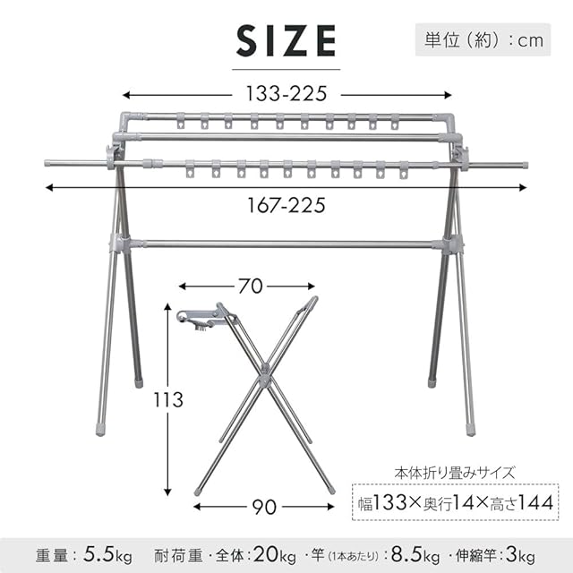 size:133~225cmタイプ(ダブルバー付き) style:単品: