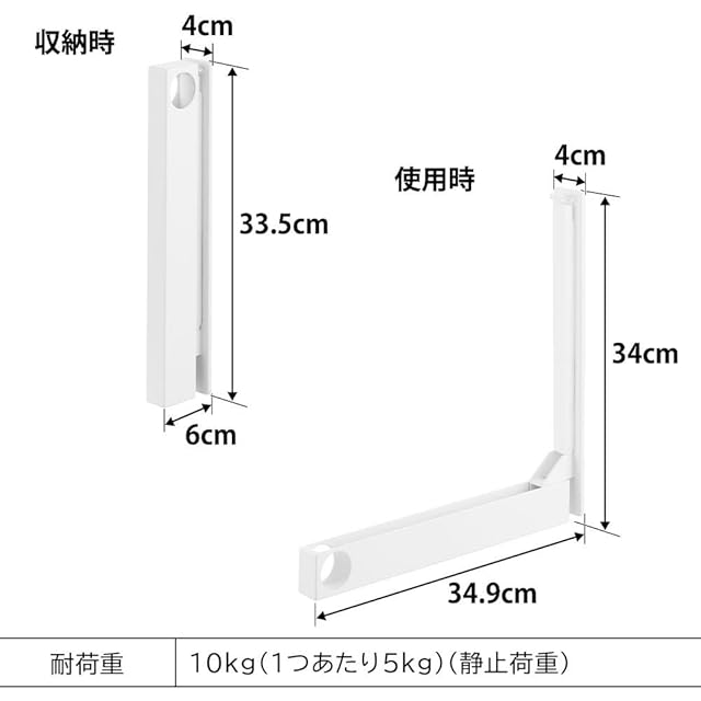 [商品サイズ]収納時:W4×D6×H33.5cm(1つあたり)、使用時:W4×D34.9×H34cm(1つあたり)、[対応サイズ]物干し竿・ポール:直径3.6cm以内(一番太い部分)