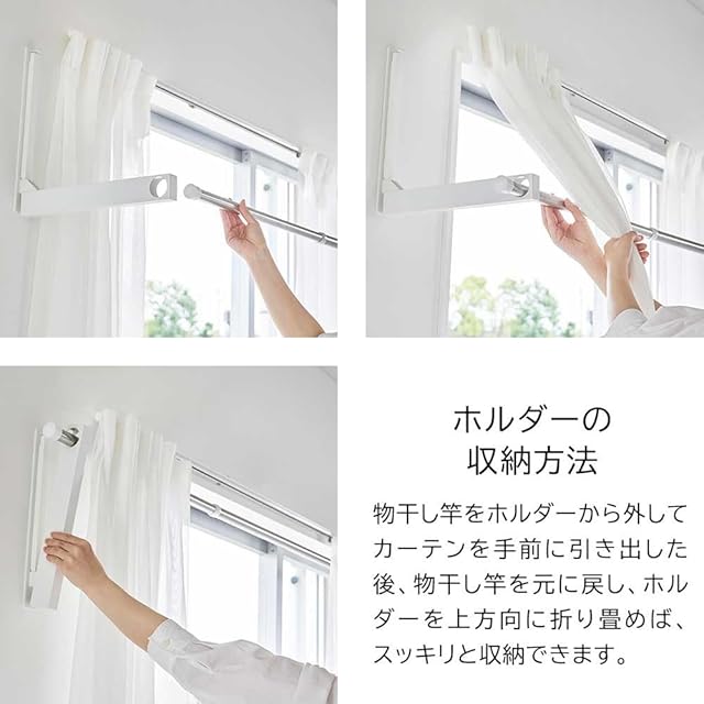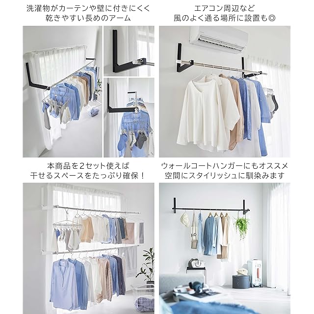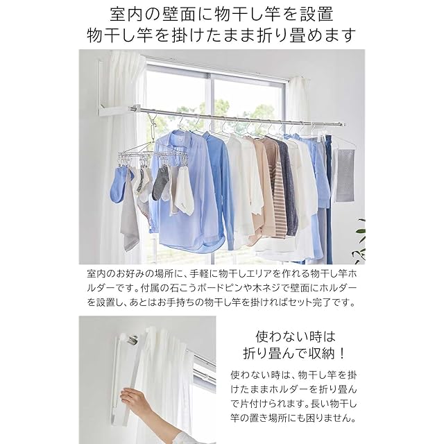 山崎実業(Yamazaki) ウォール折り畳み物干し竿ホルダー 【4個組】 石こうボード壁対応 タワー tower ホワイト 1921×2