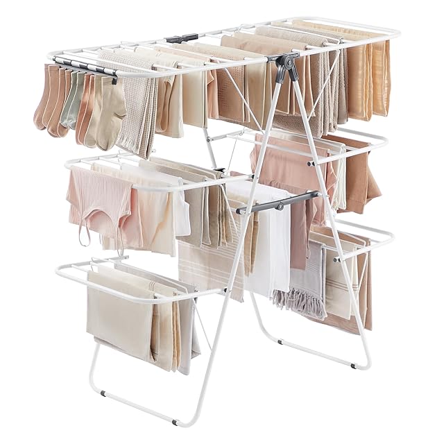 【防錆性と耐荷重性】 特別な処理を施した厚い鋼管と耐久性のあるプラスチックコネクタを備えたこの衣類乾燥ラックは、最大55ポンドまで保持できます。時間の経過とともにたわむことや錆びることを心配する必要はありません。