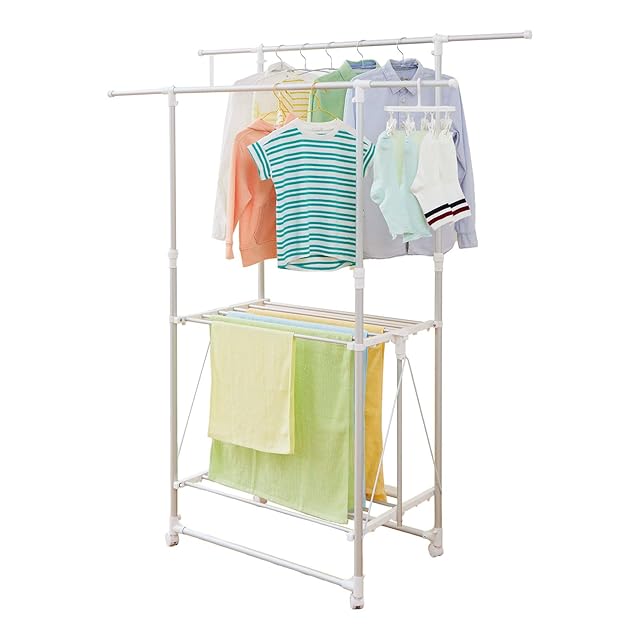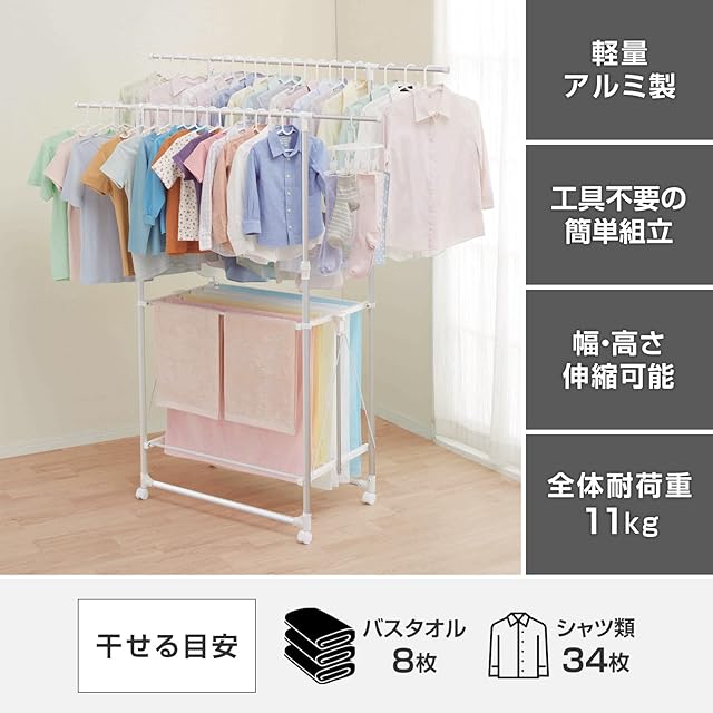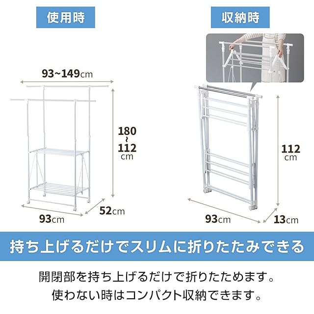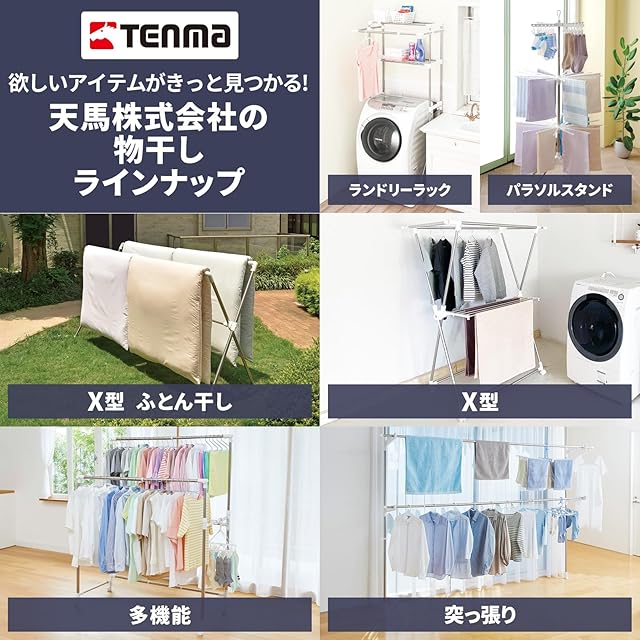 天馬(Tenma) 軽量室内物干し H型 ホワイト 幅93-149×奥行52×高さ112-180cm PORISH アルミ室内多機能物干し PS-04KA