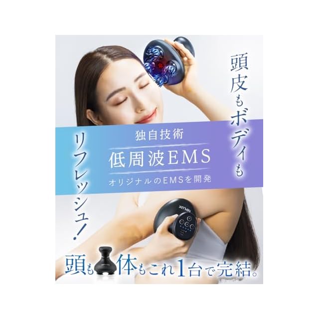 【硬くなった頭皮を独自のEMSで刺激】NIPLUX独自のEMSパルスで「ピリピリ感」を抑え、気持ちいい刺激を追求。筋肉をギュッと収縮させるような感覚で、クセになる刺激を体験。1分間の最大振動数約9,000回の振動で手だけでは落ちにくい汚れを浮かして落とす、振動による刺激をさらに加えることで、心地よく、頭皮のケアを行えます。注:EMSが初めて使用する時や慣れるまではレベル1からご使用ください。