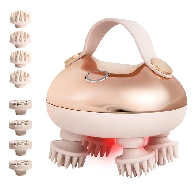 【収納簡単・1年】ヘッドスパは僅か293g、手のひらサイズで引っ掛がりがあるで滑りにくい、浴室でも壁かけて収納しやすい。コンパクトサイズ軽量で出張や旅行どこでもお持ち軽い、1回フル充電(充電時間約2時間)約80分以上利用可能で、Type-C充電でいつでも充電できて、電源切れ心配がないです。セット内容:本体、切り替えブラシ*2セット、Type-c充電ケーブル*1、収納袋*1、日本語取扱説明書*1。ご購入した日より一年間国内サービスをご提供いたします。