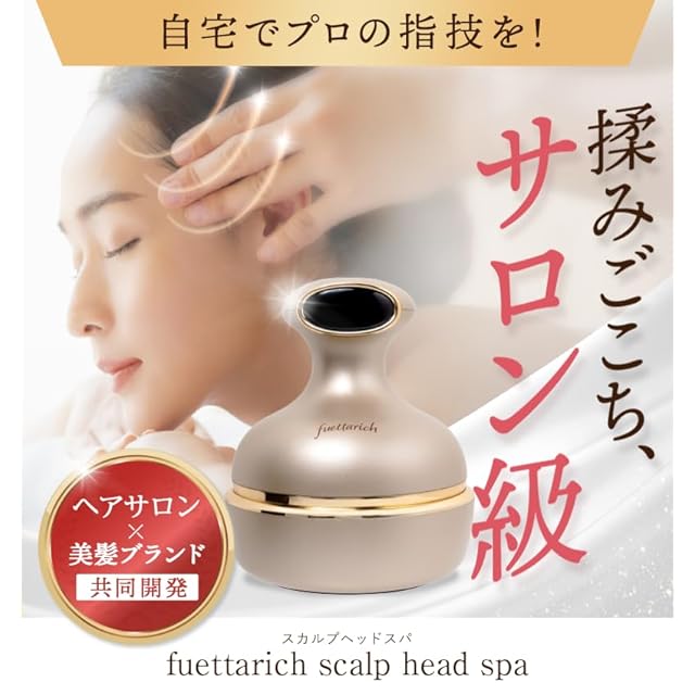 fuettarichの電動頭皮ブラシになります。 【おうちで贅沢な頭皮ケア体験!スカルプヘッドスパで健やかな頭皮ケアと美髪ケアを】 忙しい日常の中でも、心と体を癒す贅沢なヘッドスパ体験を自宅で叶えたい。そんなあなたにおすすめなのが、このスカルプヘッドスパ。頭皮ケアからリラクゼーション効果まで、これ1台で髪も心も満たされる特別な時間をお届けします。