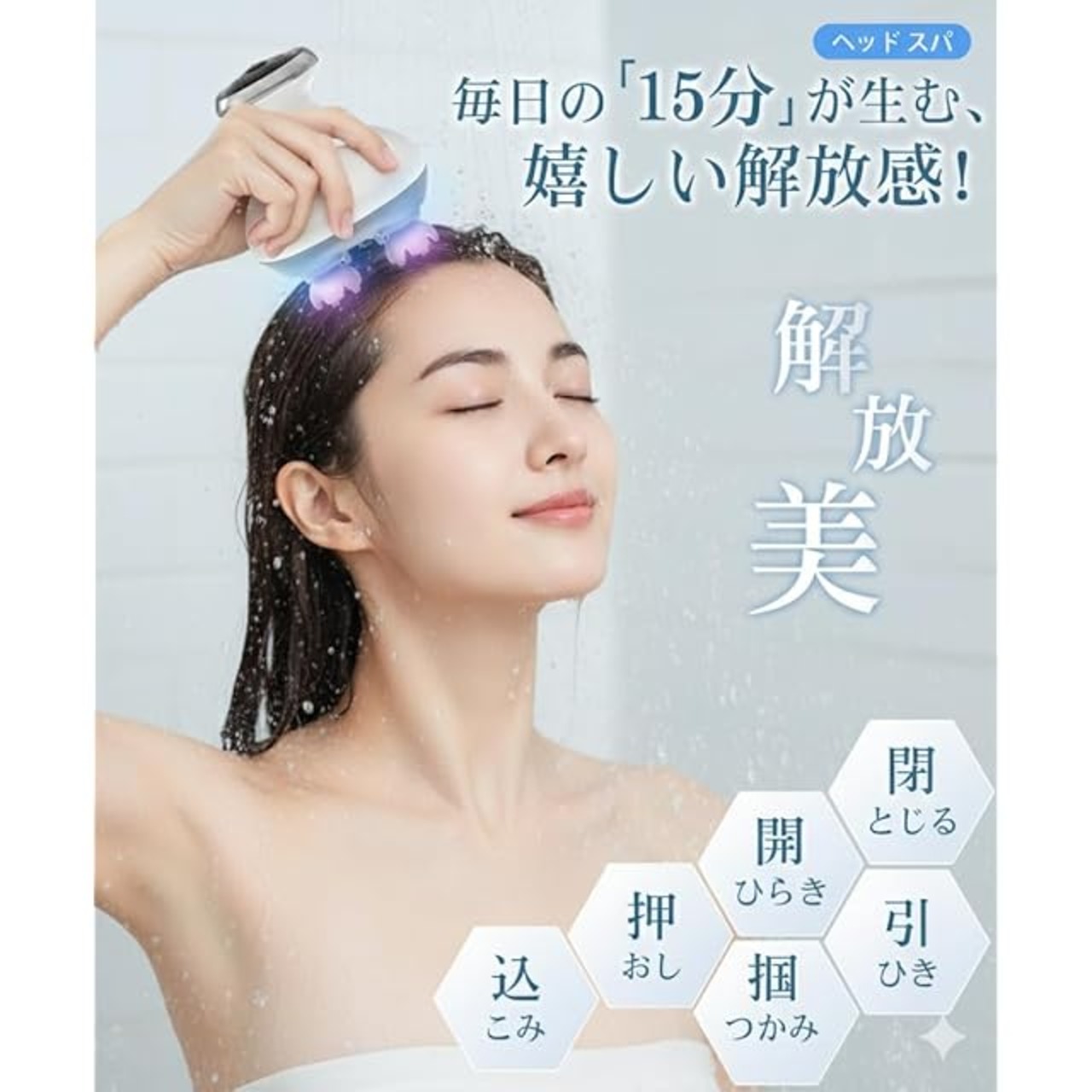 【自動タイマー搭載の電動頭皮ブラシ】15分自動タイマー搭載で、手軽にヘッドスパ体験が可能。1回の充電(3時間)で1週間分(1日1回使用時)の連続使用ができ、40dBの超静音設計のためオフィスや通勤中でも周囲を気にせず使用可能。頭皮ブラシの柔らかいブラシが頭皮を優しくケアし、ヘッドスパ効果でリラックスした時間を提供。忙しいビジネスパーソンから学生、主婦まで、毎日のルーティンに取り入れやすい頭皮スパ アイテムです。充電式で場所を選ばず、いつでも気軽に使えるのが特長で、頭皮のコンディションを整えたい方に最適な商品です