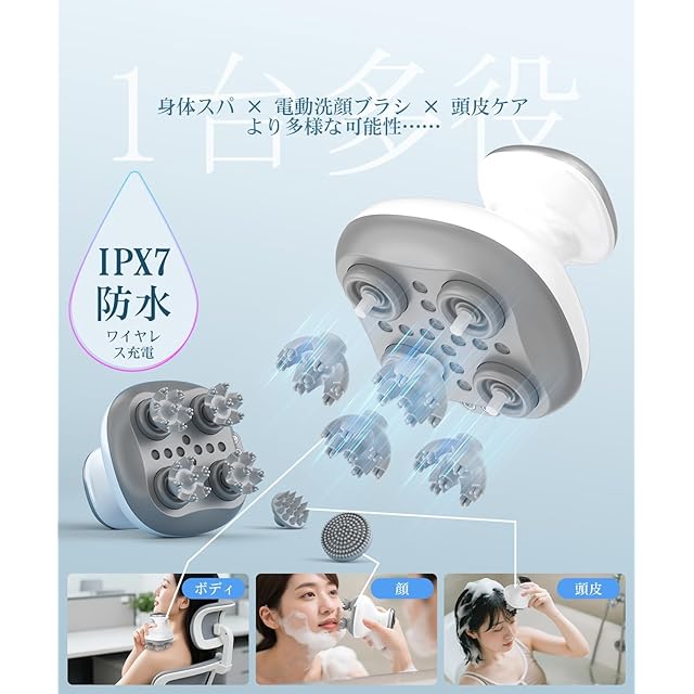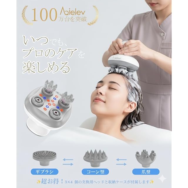 AQielev ヘッドスパ 頭皮ブラシ 【日本監修・レッドドット賞受賞】 電動頭皮ブラシ 多機能 美顔器 AI仿生頭皮スパ スカルプスパ IPX7防水 赤青LED光(630nm&480nm) 360°正逆回転&急緩調節 最高で1 万回の振動 深層クレンジング 3種交換ヘッド付属(頭皮/顔/体用)230g軽量 リラックス 美容家電 人間工学設計 日本語説明書付 ギフト 誕生日プレゼント女性 男性