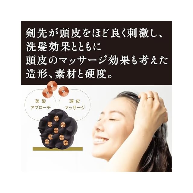 【頭皮へのマッサージ効果】 剣先が頭皮をほど良く刺激し洗髪しながらにして頭皮のマッサージ効果を考えた 造形・素材と硬度。