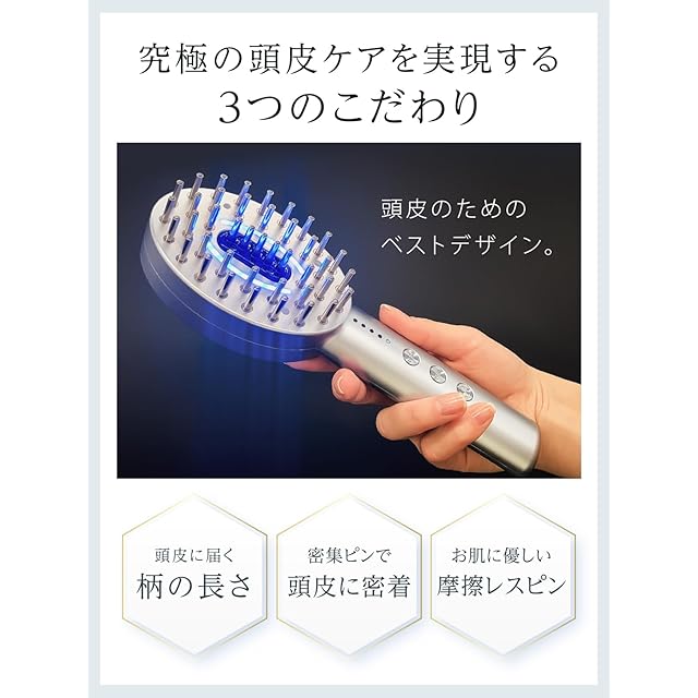 【頭皮と顔・身体用2 種類のモード搭載】HIGH / 頭皮モード:頭皮ケアのための強刺激EMSモードです。LOW / 顔・身体モード:初めてでも安心の低刺激EMSモードです。それぞれ5段階のEMSレベル調整が可能で、お好みに合わせてご使用いただけます。筋トレと同じように継続的に刺激を変えて、頭皮と表情筋にアプローチします。※EMSの感じ方には個人差があります。※使い始めや慣れるまではレベル1から徐々にお使いください。