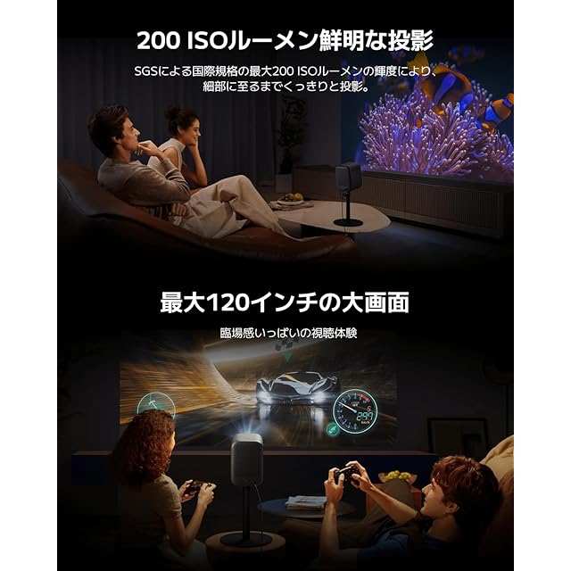 ✅鮮明な投影:SGSによる国際規格の*最大200 ISOルーメンの輝度により、細部に至るまでくっきりと投影します。