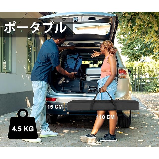 持ち運びや保管が簡単 - 80 インチのスクリーンは重さわずか 3.7 kg、サイズは 110 x 15 x 12 cm です。このプロジェクター スクリーンにはアウトドア用キャリーバッグが付属しており、旅行、教育、パーティー、キャンプなど、外出先でのエンターテイメントに最適です。