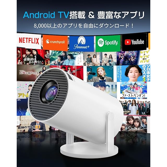 【Android TV搭載】Wi-Fi接続で、Android TV内蔵のプロジェクターが、8,000以上のアプリから映画やテレビ番組を簡単に視聴可能。Prime Video、YouTube、Netflixなどを、30インチから300インチの大画面で楽しみ、映画館のような迫力を自宅で体験できます。さらに、Google Play ストアから豊富なアプリをダウンロードし、好みに合わせたコンテンツを追加できます。Wi-Fi接続でスマートフォンやタブレットと連携し、家族や友達と一緒にシェアして楽しめます。大画面でより多彩なエンターテイメントを提供します。