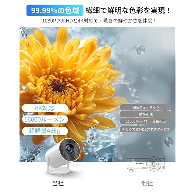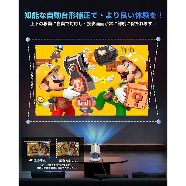 【2025年新登場!実用性抜群】新登場の小型プロジェクターは、18000ルーメンの高輝度、270°回転可能、4K対応で、鮮明な映像を提供します。Android TV搭載で、NetflixやYouTubeも直接視聴可能。Wi-Fi 6により、低遅延・高速接続を実現し、オンラインでの視聴もスムーズです。Bluetooth 5.4対応で、ワイヤレス接続も快適に。HIFIスピーカー内蔵で高音質、自動台形補正機能でどこでも簡単に投影できます。さらに、日本語、英語、中国語、スペイン語を含む多言語対応で、世界中のユーザーに対応。日本語説明書付きで、初心者でも安心して使えます。家庭用、ビジネス、教育用途にも最適な一台です。