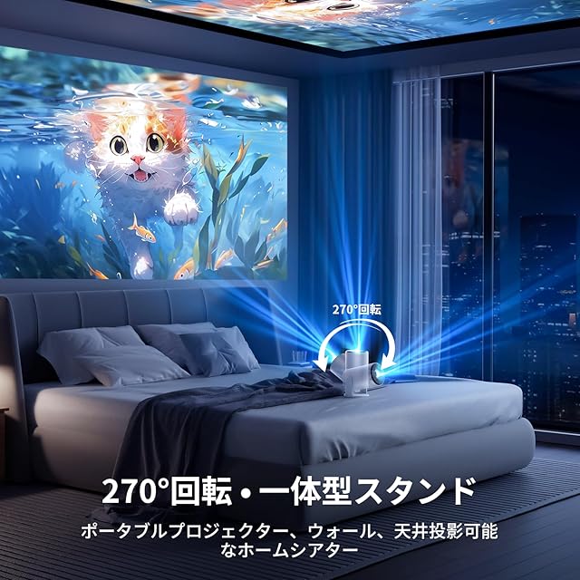 ✨【Android 11 TV内蔵・270°回転スタンド一体型】プロジェクターはOSを内蔵しており、Wi-Fi接続で自由にアプリをダウンロード可能。お好きな番組や動画をすぐにお楽しみいただけます。TV Stickの別途購入が不要なため、コストパフォーマンスも抜群。Prime Video、YouTube、Netflixなど、多彩な動画コンテンツを大画面で体験してください。スタンドが本体と一体型のため、三脚が不要。設置の自由度が大幅に向上し、270°の自在な角度調整で、天井投影も壁への投影も思いのまま。どこでも快適な大画面エンターテインメントを実現します。【期間限定キャンペーン実施中】今ご注文いただくと、無料でスクリーンプレゼント!詳しくは説明書記載のメールアドレスまでお気軽にお問い合わせください。