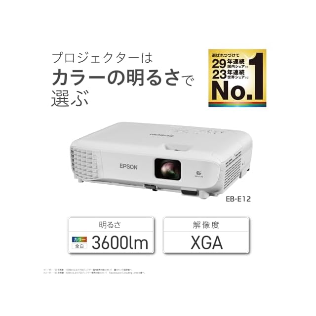 エプソン ビジネスプロジェクター 液晶 3600lm XGA 2.4kg EB-E12 HDMI 2025年モデル