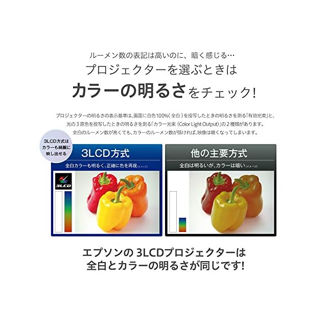 3LCD搭載でカラーが明るく投写されます。明るい会議室でもはっきり見える明るさ3600lmを実現。コントラスト比15000:1でメリハリのある映像投写ができます。