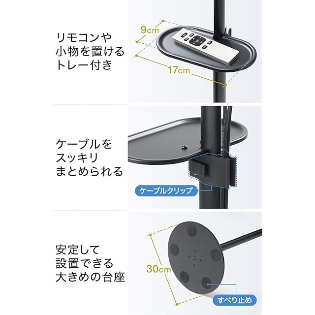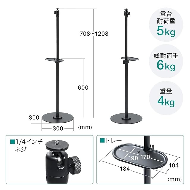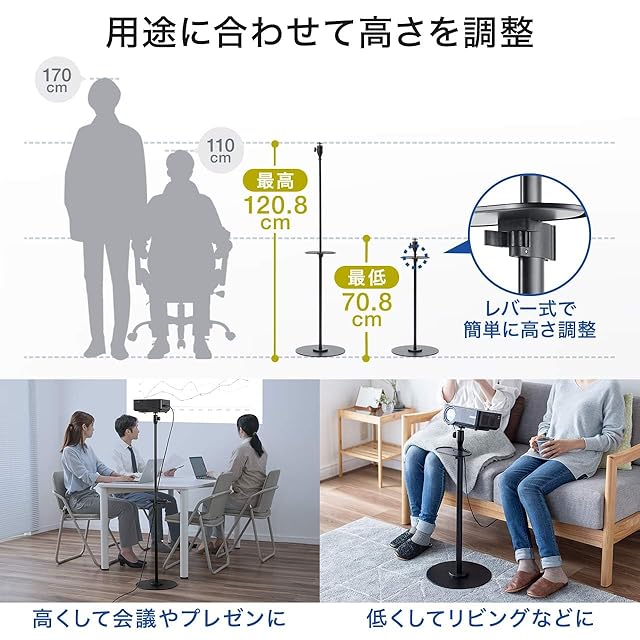 サンワダイレクト プロジェクタースタンド 高さ70.8~120.8cm 1/4インチ・カメラネジ対応 ブラック 100-PRST006BK