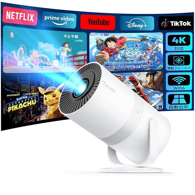 Tecaki 2025年 超小型 プロジエクター 家庭用【Android TV内蔵・自動台形補正・電動フォーカス】 270°回転 天井投影 1080P 18000LM 4K対応 静音 200インチ大画面 50%ズーム ホームシアター プロジェクター 短焦点 Wi-Fi6 Bluetooth5.3 軽量 スピーカー内蔵 スマホ/PC/DVD/PS機/SWITCHなど対応 M13 日本語説明書