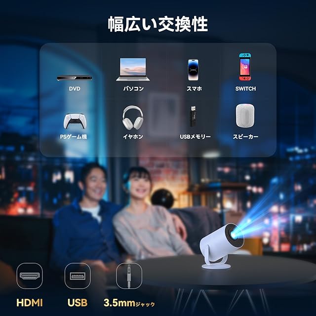 【幅広い交換性・静音化にアップグレード】HDMI/USB-C/3.5mmオーディオ端子/Bluetooth/Wi-Fiなど、あらゆる接続方式に対応。最新ゲーム機(PS機)、DVD、TV stick、スマートフォン、ノートPCなど、多様なデバイスとシームレスに連携します。またさらに、独自の冷却システムを搭載し、電力も少なく過熱することもない、7月の最新バージョンで30dB以下の騒音を抑えて、ファン音の邪魔が気にすることなく映像を鑑賞できる。