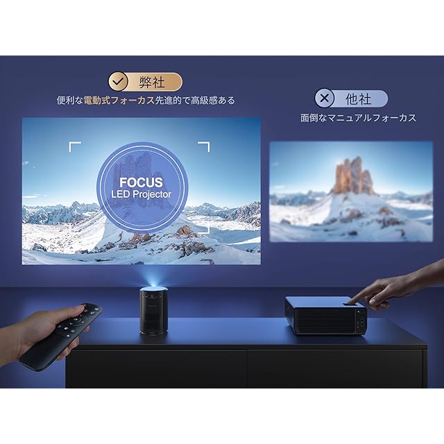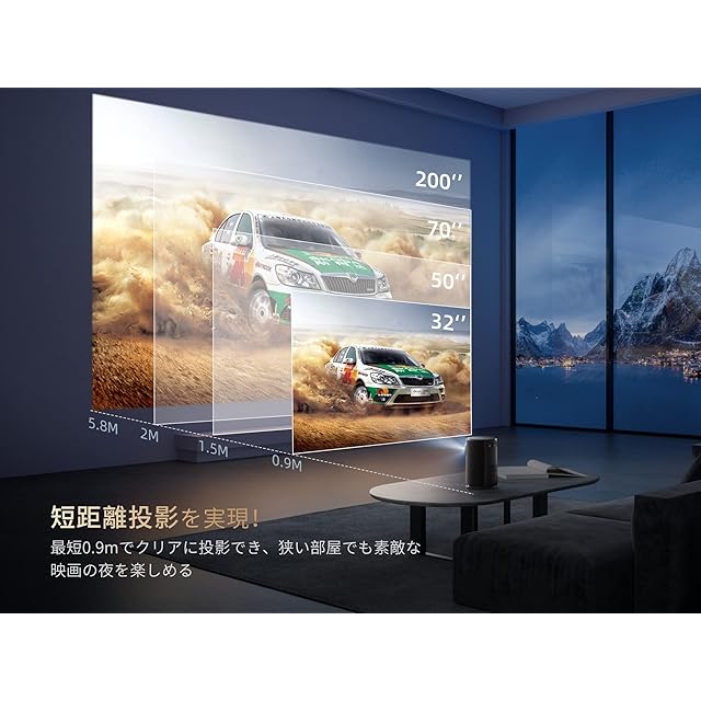 【空間を彩る自由な大画面:目に優しい安心設計】わずか0.9mの距離から23インチ(スマートフォンの画面約4倍)、最大6.8mの距離では300インチの巨大スクリーン体験を実現。寝室、リビング、一人暮らしのアパートといった家庭用利用はもちろん、誕生日会の背景演出、イベントの装飾、展示会のサインなど、無限の可能性を秘めています。拡散反射映像技術を採用し、刺激が少ない「目に優しい光」で、長時間の視聴でも疲れにくい設計です。タイマー機能も搭載しているので、お休み前のリラックスタイムにも安心。あなたの空間に最適な、心地よい映像体験を提供します。