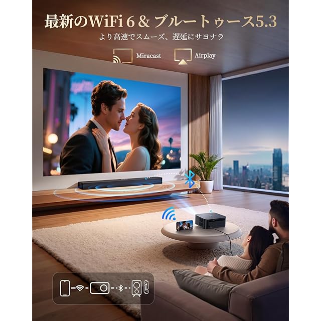 ➤【WiFi6&Bluetooth 5.3&HDMI ARC機能】Airplay (iOS)とMiracast (Android & Windows)をサポートするWiFi 6で、当社の携帯電話プロジェクターに画面を継ぎ目なくキャストしてお楽しみください。写真やビデオを大画面で共有して、家族の思い出を再現しましょう。K13は、強力な内蔵スピーカーとBluetooth 5.3も搭載しており、既存のサウンドシステムに簡単に接続できます。さらに、HDMI ARC機能により、余分な音声ケーブルを使用することなくサウンドバーの接続が簡素化され、オーディオ・ビジュアル体験全体が向上します。