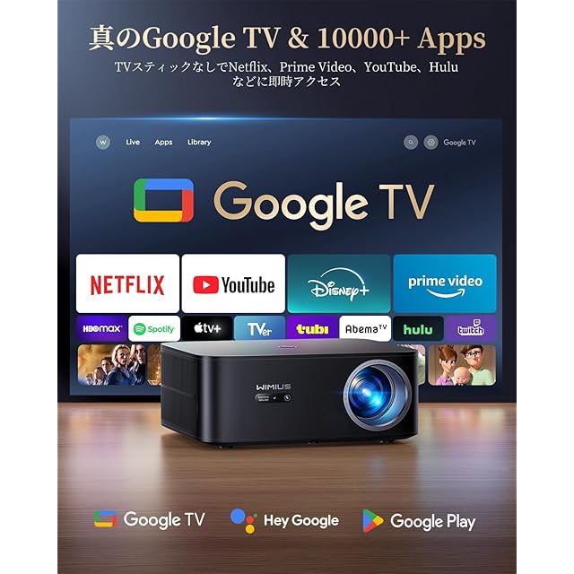 【1500ANSI/公式Google TV/音声制御】プロジェクター 4K 1500ASNI高輝度【自動フォーカス&自動台形補正】 WiMiUS K13 HDMI ARC WiFi6 Bluetooth5.3 300"大画面 ホームシアター ビジネス用プロジェクター スマホ/PC/DVD/Switch/などに対応 日本語取扱説明書