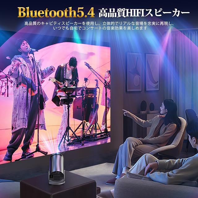 【超高速Wi-Fi 6&Bluetooth5.4&高音質HiFiスピーカー】この小型プロジェクターは、2.4G および 5G WiFi デュアルバンドをサポートするだけでなく、安定した信号と高い伝送速度を備えた超高速 6G WiFi 接続テクノロジーも備えています。 iOS、Android、Windows デバイス (ミラーリング対応のスマートフォン、タブレット、コンピューターなど) を Wi-Fi 経由ですばやく接続し、非常にスムーズで遅延のないオンライン ゲーム、映画鑑賞、ビデオ体験を簡単に楽しめます。また、Bluetooth 5.4 と内蔵の高品質 HiFi スピーカーが付属しており、お気に入りのスピーカーやワイヤレス ヘッドフォンからオーディオをストリーミングすることができ、厳選された音響環境で迫力ある映像と映画のような雰囲気を楽しむことができます。