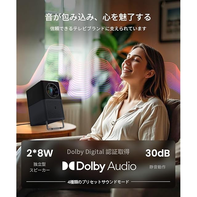"超静音 & 長寿命:トリプルエアフロー冷却システムにより、動作音をわずか30dBまで低減。さらに密閉型光学構造と30,000時間の光源寿命を備え、長年にわたり防塵かつメンテナンス不要でシネマ体験をお楽しみいただけます。"