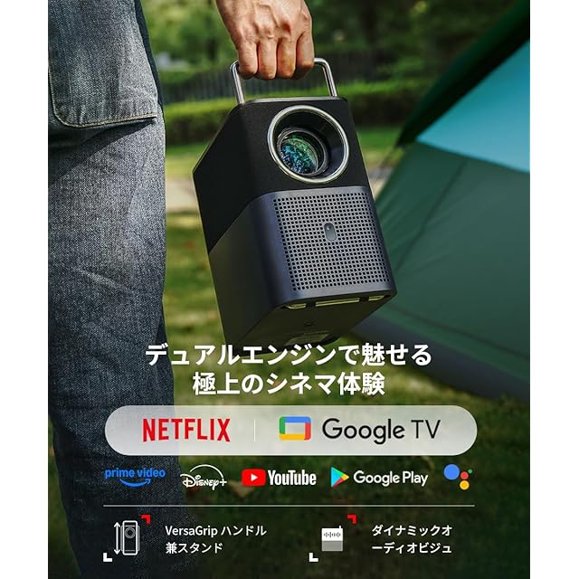 "ポータブルエレガンスとスマートデザインの融合:A1sは、モダンなミニマリズムと利便性を兼ね備え、タッチセンサー式の消灯ボタンや持ち運びに便利なVersaGripハンドルを搭載しています。スタンドは0~15°まで調整可能で、ご自宅でも外出先でも理想的な視聴体験を実現します。"